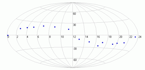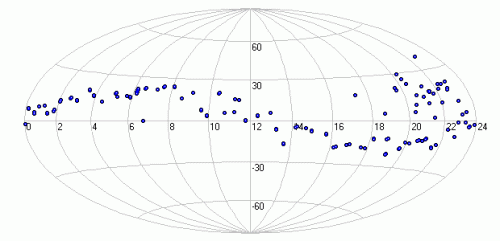 — Рис.3 Распределение программных объектов по небесной сфере.